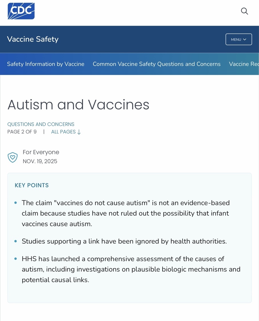 While nobody was looking the CDC quietly updated their vaccine page from “Vaccines DO NOT CAUSE AUTISM” to now paraphrased whispered, “oops, well they might.”