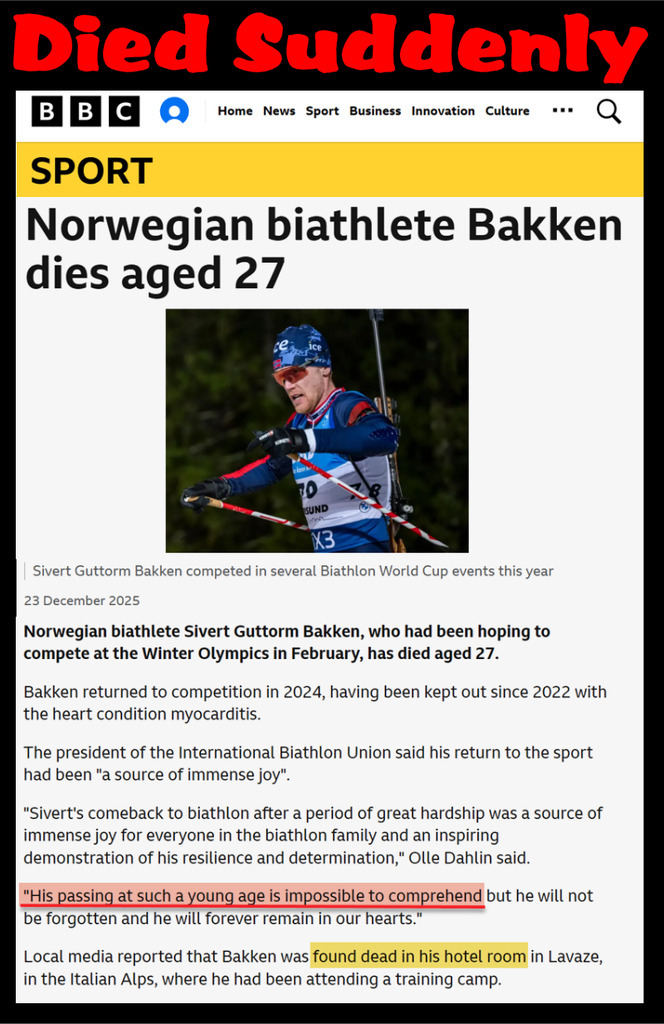 His death is not "impossible to comprehend". He was obviously "vaccinated" against COVID, so his death just is one among HUNDREDS of athletes who died after their "vaccination", as did HUNDREDS OF THOUSANDS of other "vaccinated" individuals under 50! https://www.bbc.com/sport/articles/c33mkn574vgo