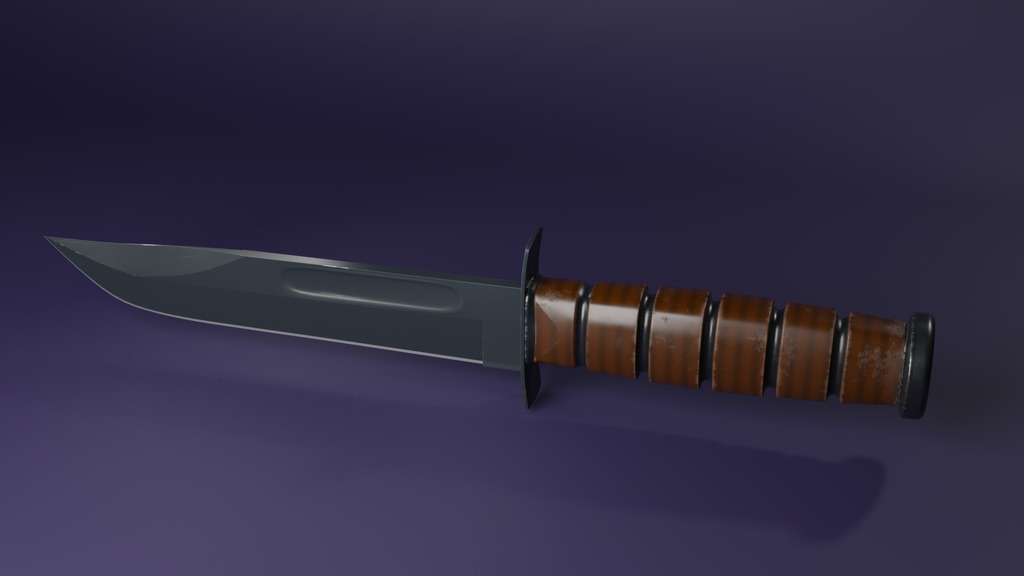 This is my most recent work using Blender 3.6.1. KA-Bar was created by Matt Dickun, using Blender.