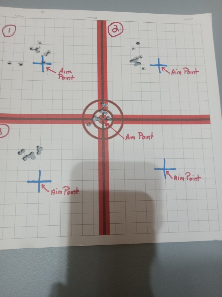 Center Target: Control group(Crosman Premier Piranha 14.3gr) 1: Gamo Rocket 14.3gr 2: Predator metalmag 17gr 3: H&N Baracuda Hunter 18.21gr
