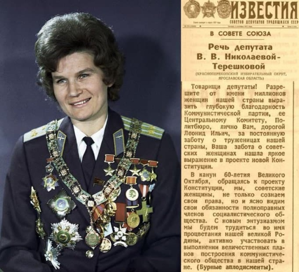 84-year-old Valentina Tereshkova (the world's first female cosmonaut) went to the new State Duma of Russia (lower house of parliament). This grandmother has been a deputy since 1966 (!).