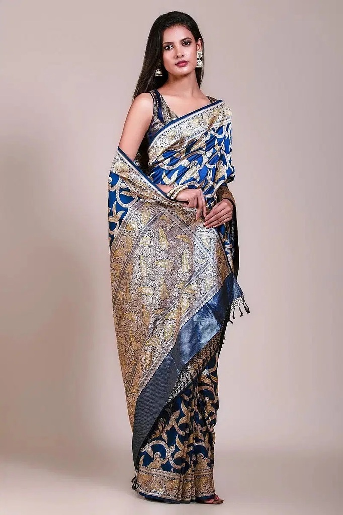 Pink Zari Woven Silk Designer Saree with Embroidered Border and Unstitched Blouse
