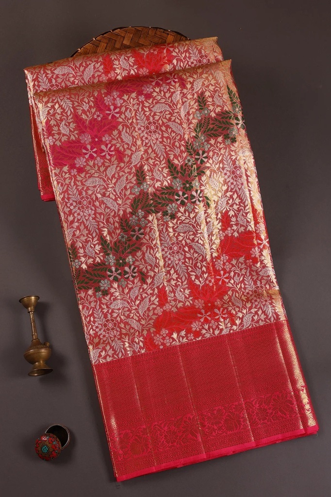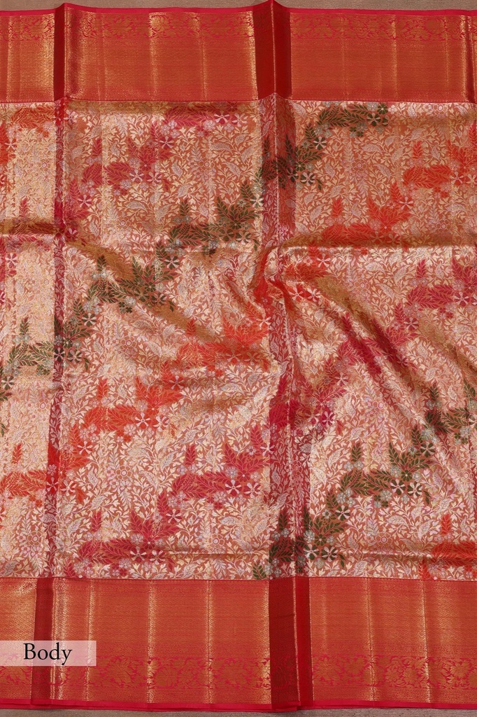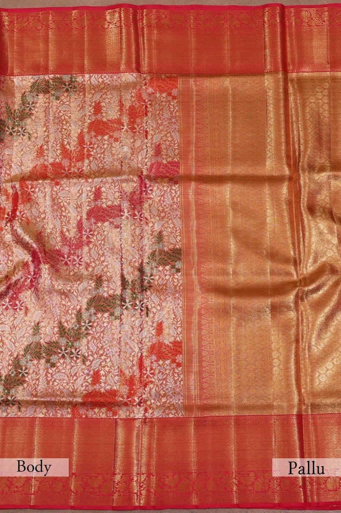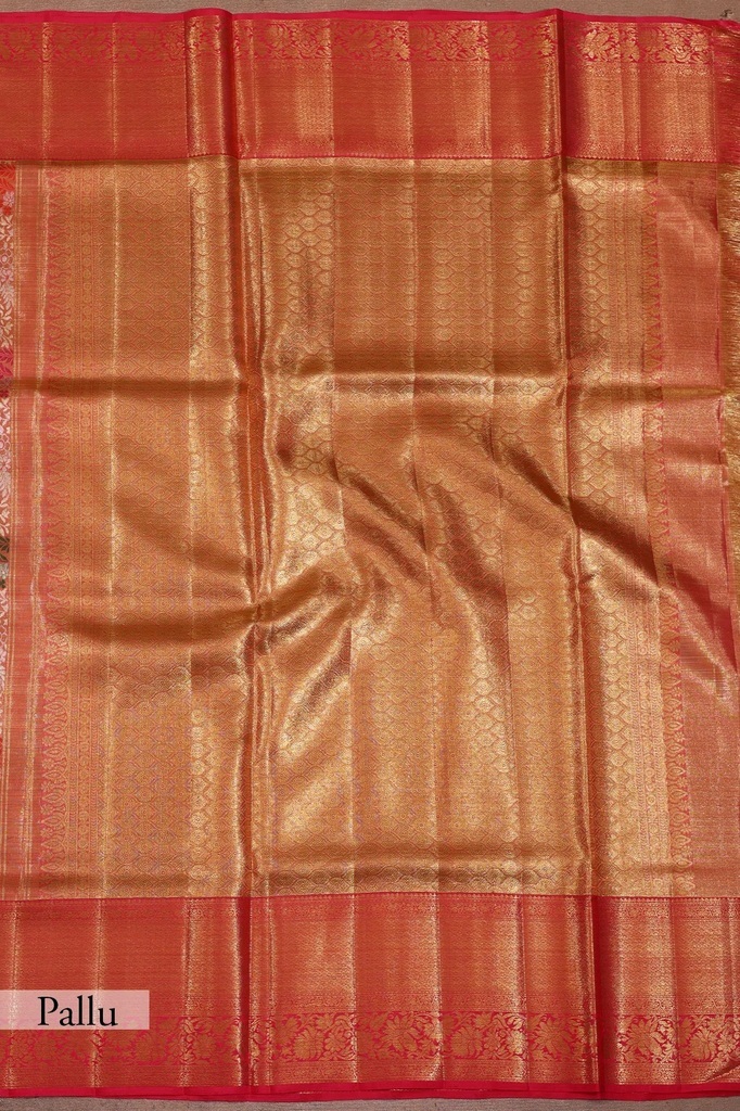 Pink and Gold Dual Tone Zari Woven Kanchipuram Tissue Saree with Unstitched Blouse