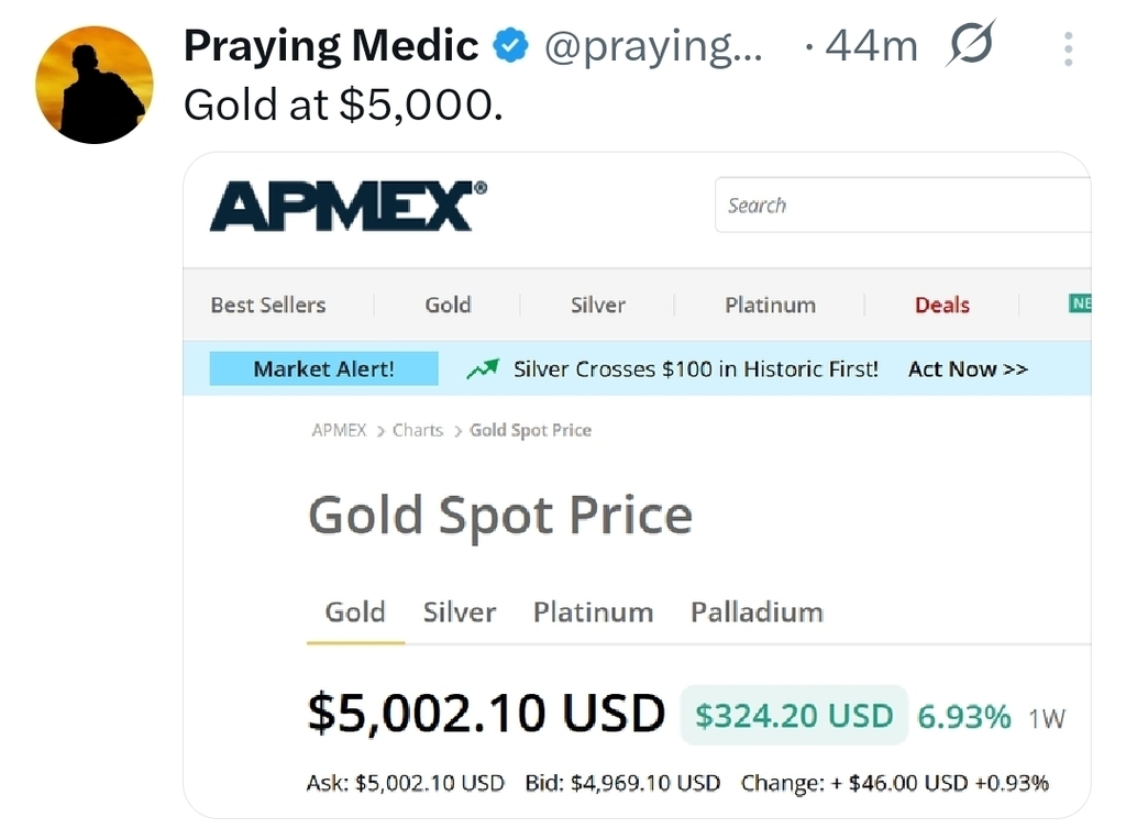 🚨 Gold Futures just surged to $5,125, up $108 on the session to a brand new all time high. 🟡