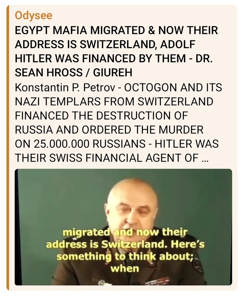 EGYPT MAFIA MIGRATED & NOW THEIR ADDRESS IS SWITZERLAND, ADOLF HITLER WAS FINANCED BY THEM - DR. SEAN HROSS / GIUREH