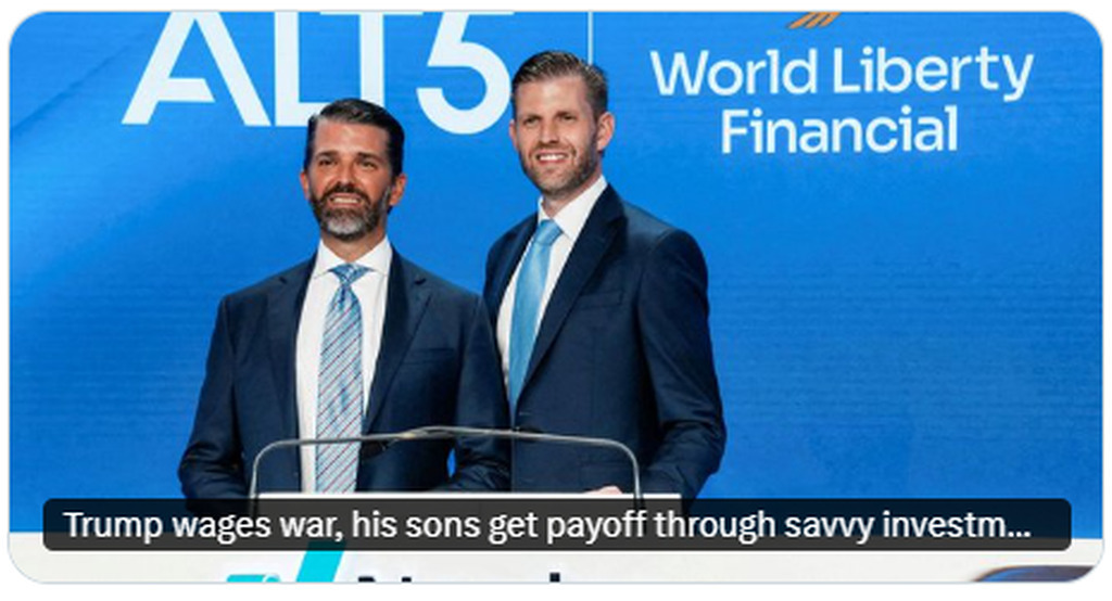 Trump wages war, his sons get payoff through savvy investments