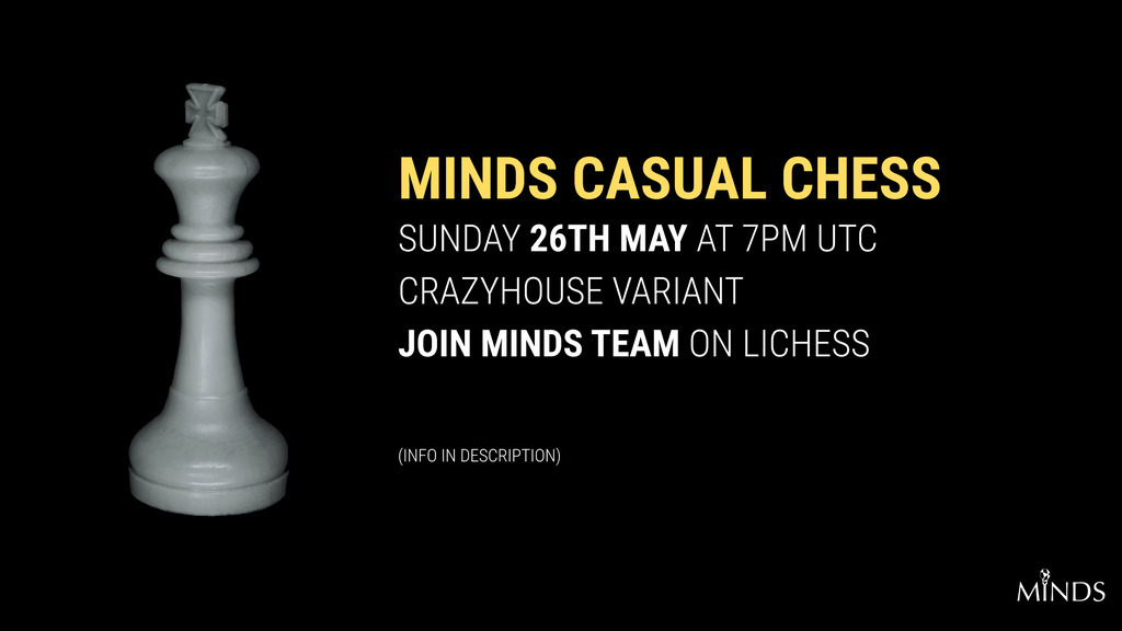 Hey Minds Community! Join us for a casual chess tournament on Sunday, 26th of May at 7PM UTC. We'll be playing Crazyhouse—a dynamic variant where captured pieces can be redeployed. To participate, make sure to join the Minds team on lichess: lichess.org/team/minds-chess (tag...See more