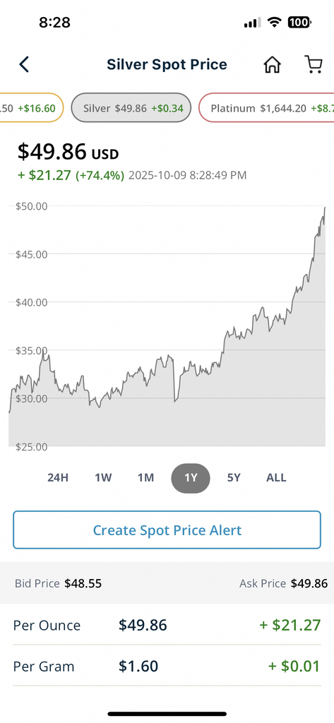 Silver broke its all time high for the first time since 1980 last night 😃 (although inflation-adjusted that won't really be until it hits 196 USD given that was 45 years ago). From what I hear, if anyone wants to buy any more you have approximately 1-2 weeks before it is no longer available. 🚀